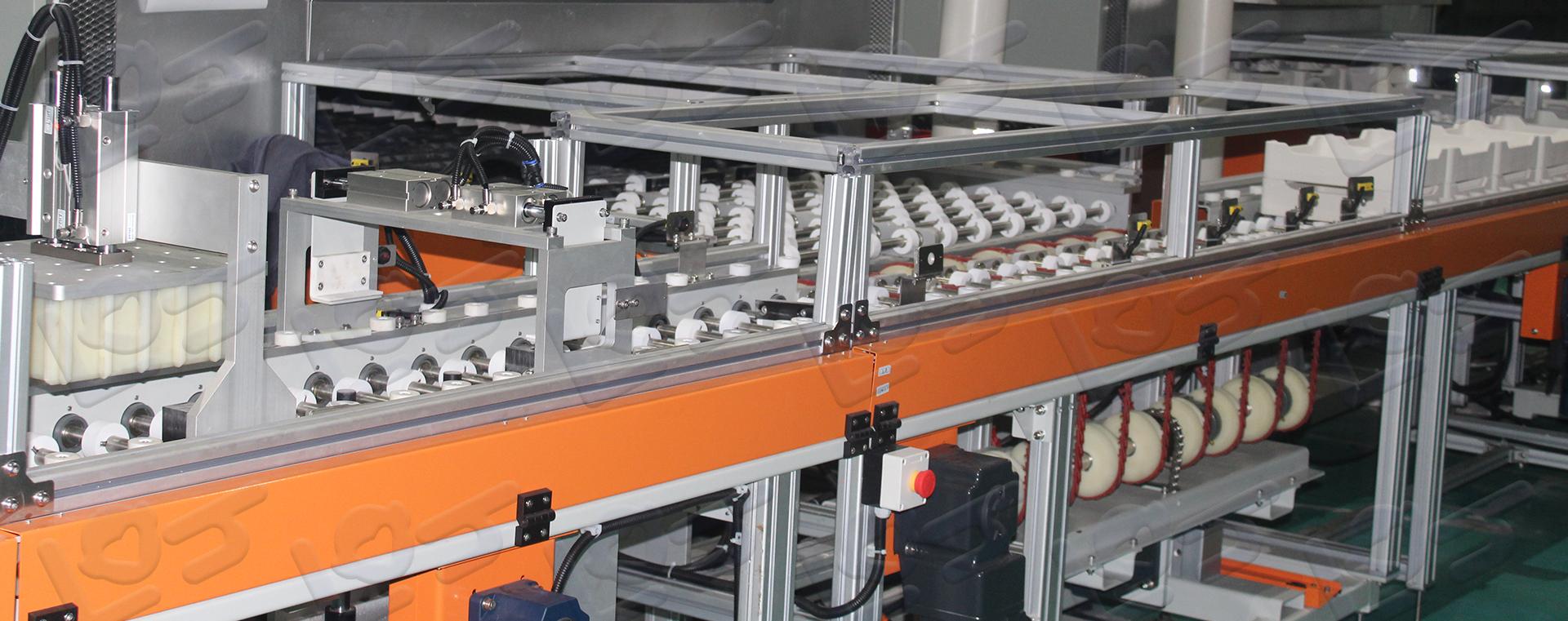 鋰電外軌線采用全新的無(wú)人化智能生產(chǎn)標(biāo)準(zhǔn)設(shè)計(jì),整條生產(chǎn)線無(wú)需人工干預(yù),匣缽傳輸高效穩(wěn)定,各工位動(dòng)作流暢平穩(wěn),整體密封性能高。